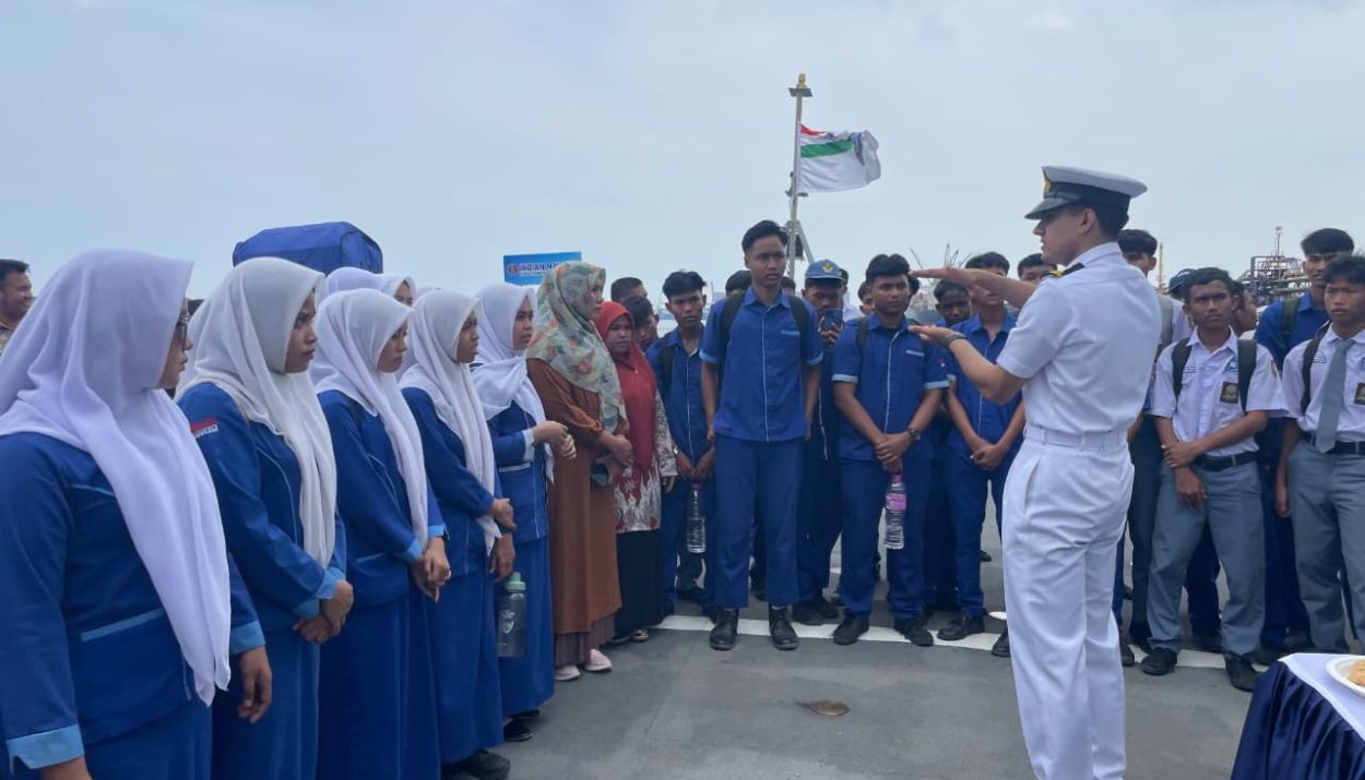 An onboard reception co-hosted by the Senior Officer, 1TS, and the Consulate General of India, Medan, was attended by senior dignitaries of Kodaeral I, with Kolonel Wirawan Aby P, Chief of Operations, as the Chief Guest. The reception provided an opportunity for meaningful interactions, further strengthening professional ties and fostering goodwill between the two Navies. Professional engagements included exposure of Indian Naval trainees to various facilities at Komando Daerah Angkatan Laut I (Naval Regional Command I), providing them insight into the roles and functions of the Command in the region. Besides this, Friendly sports and games and joint yoga sessions were organised with personnel of the Indonesian Navy, fostering camaraderie and mutual goodwill. The ships were open to school children and received an overwhelming response. A guided tour of the ships sparked visible excitement and curiosity among the students, making the visit an inspiring and memorable experience.