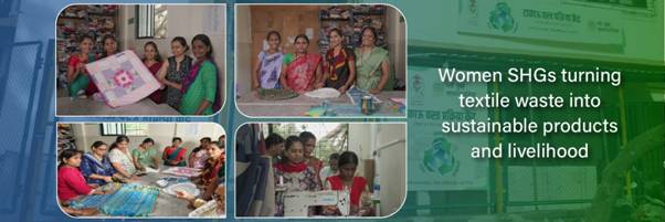 Suitable fabrics are transformed into bags, mats, accessories, apparel and home décor items, handcrafted by skilled women from self-help groups. These upcycled products are later showcased and sold at exhibitions, giving a renewed life and purpose to materials that were once considered waste.