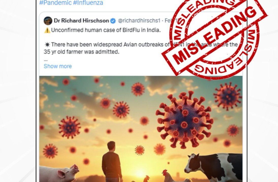 The claim circulating on social media that a suspected case of bird flu in humans has been reported in India is misleading, according to the Fact Check unit of the Press Information Bureau (PIB), which functions under the Government of India.