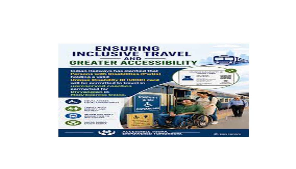 Ensuring inclusive travel and greater accessibility, Indian Railways has clarified that Persons with Disabilities (PwDs) holding a valid Unique Disability ID (UDID) card will be permitted to travel in unreserved coaches earmarked for Divyangjan in Mail/Express trains.