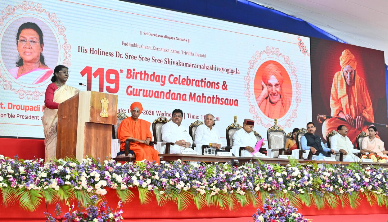The President of India, Smt Droupadi Murmu graced the 119th birthday celebrations and Guruvandana mahotsava of Dr Sree Sree Sivakumara Mahaswamiji at Sree Siddaganga Math, Tumakuru, Karnataka today (April 1, 2026).