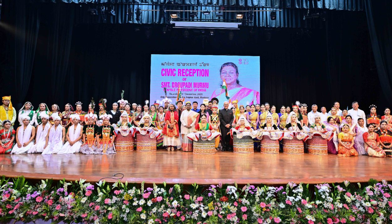 The President of India, Smt Droupadi Murmu, attended civic reception hosted by the government of Manipur in her honour at the City Convention Centre, Imphal this evening (December 11, 2025). She also laid foundation stones and inaugurated various developmental projects on the occasion.Addressing the gathering, the President said that Manipur is a land of resilience, courage and extra-ordinary cultural richness. Over generations, its people have enriched the nation by contributing immensely to diverse areas including sports, the armed forces, art and culture, and public service.
