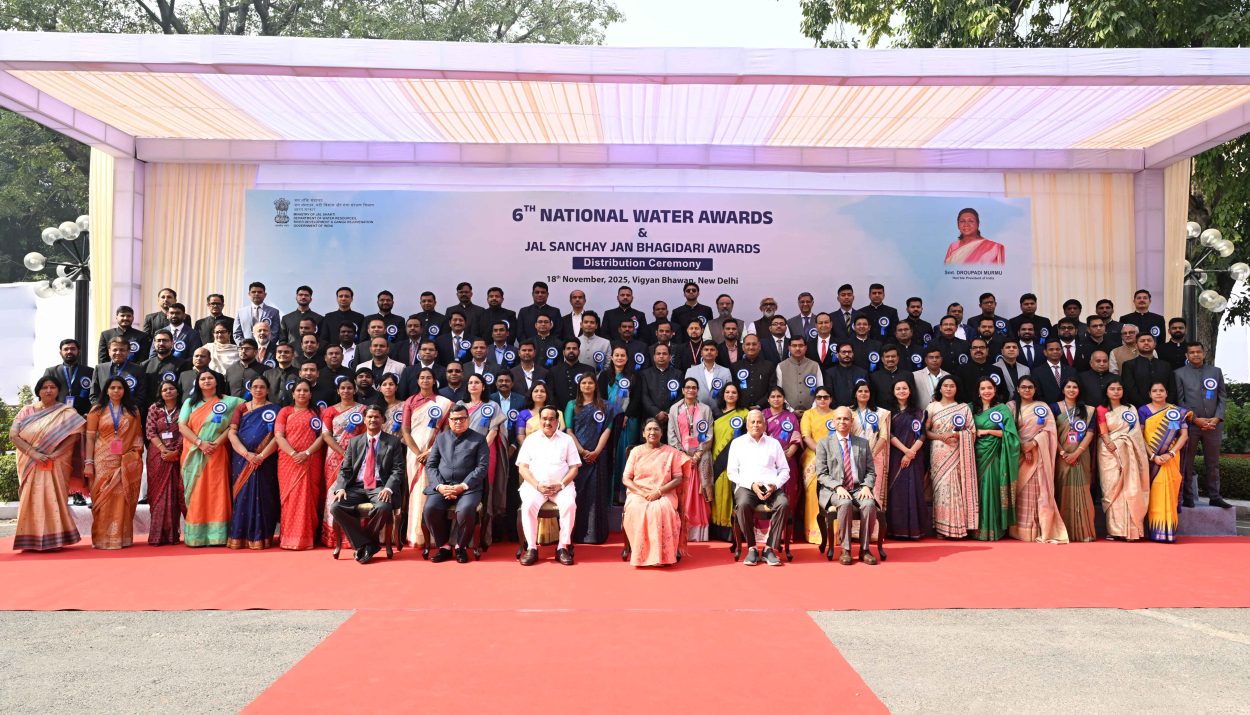 The President of India, Droupadi Murmu presented the sixth National Water Awards and Jal Sanchay-Jan Bhagidari Awards at a function held in New Delhi .Speaking on the occasion, the President said that the story of human civilization is the story of groups settling in river valleys, along seashores, and around various water sources. In our tradition, rivers, lakes, and other water sources are revered. In our national song, the first word Bankim Chandra Chatterjee wrote is Sujalam. This means “blessed with abundant water resources.” This fact reflects the priority of water for our country.The President said that efficient water use is a global imperative. Efficient water use is even more crucial for our country because our water resources are limited compared to the population. Per capita water availability is a major challenge. She underlined that climate change is affecting the water cycle. In such circumstances, the government and the public should work together to ensure water availability and water security.The President was happy to note that under the Jal Sanchay-Jan Bhagidari initiative launched last year, more than 35 lakh groundwater recharge structures have been constructed.