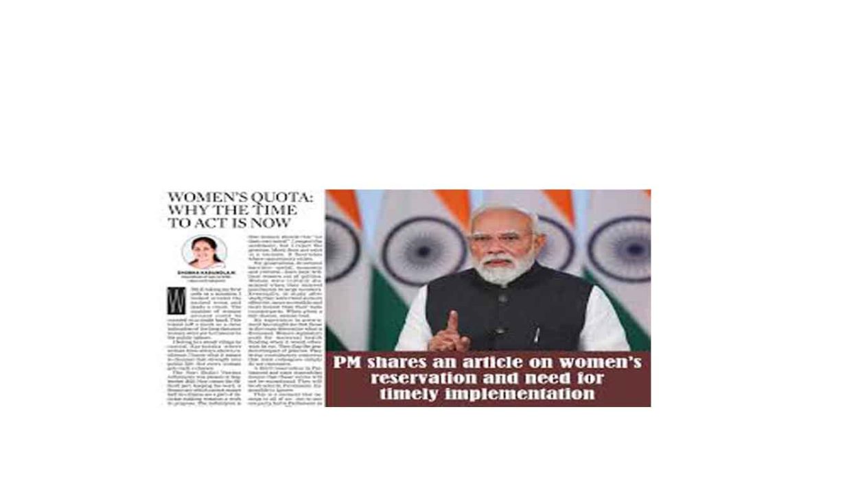 The article highlights the one-third reservation for women as a moment that belongs to all and to Parliament as an institution. It stresses the need for urgency for the women of India in conducting the census, completing delimitation and ensuring that not a day is lost.