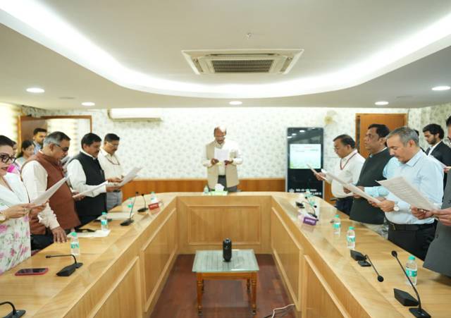 The observance commenced with a Mass Swachhata Pledge and rendition of the Swachhata Bharat Anthem at the Conference Room in Shastri Bhawan, reaffirming the commitment of participants towards the vision of a clean and healthy India. Dr. Rajiv Mani, Secretary, Department of Legal Affairs, administered the pledge to officers and staff members of the Department on 02.04.2026.