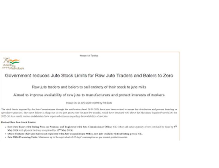The stock limits imposed by the Jute Commissioner through the notification dated 20.03.2026 have now been revised...